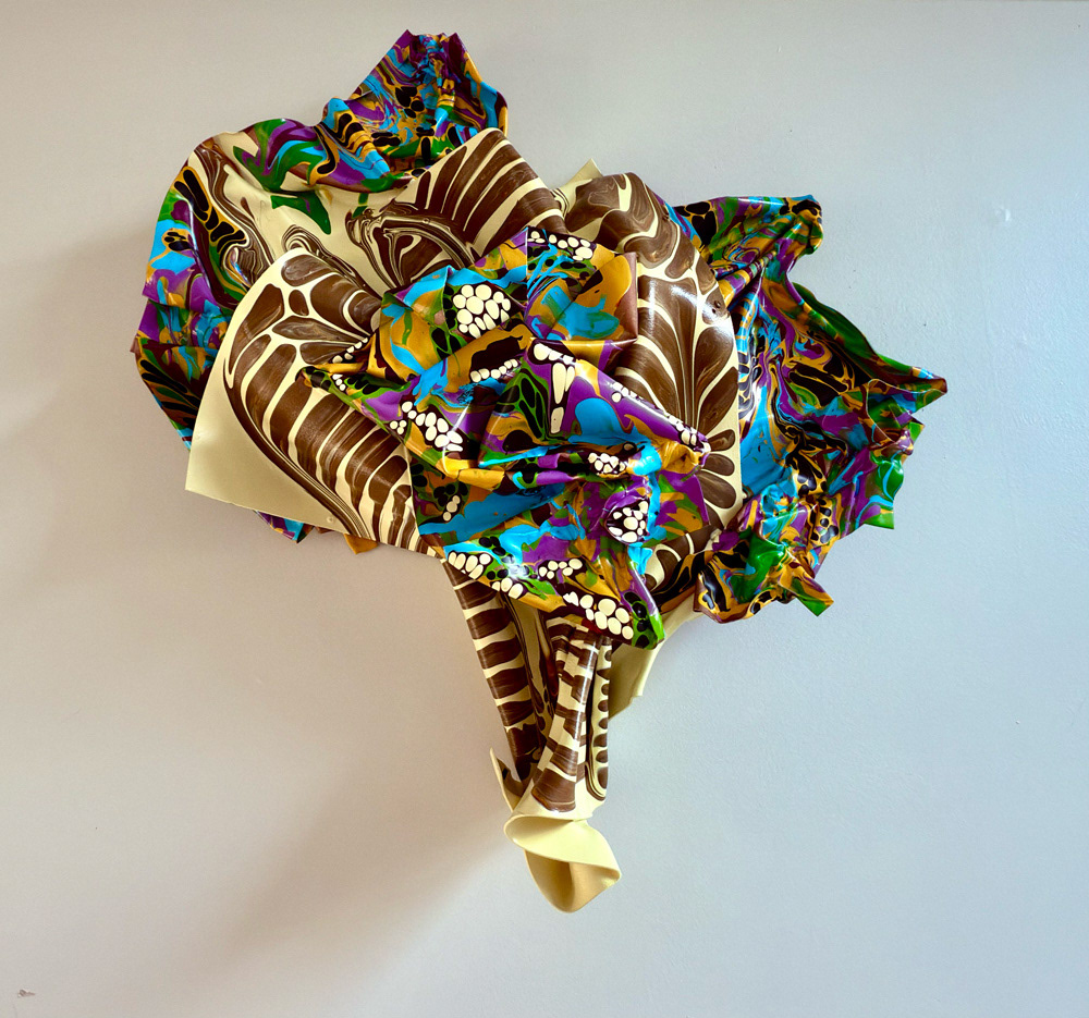 “bam bam”. 30in. X 34in. Acrylic poured on flame molded ABS plastic.